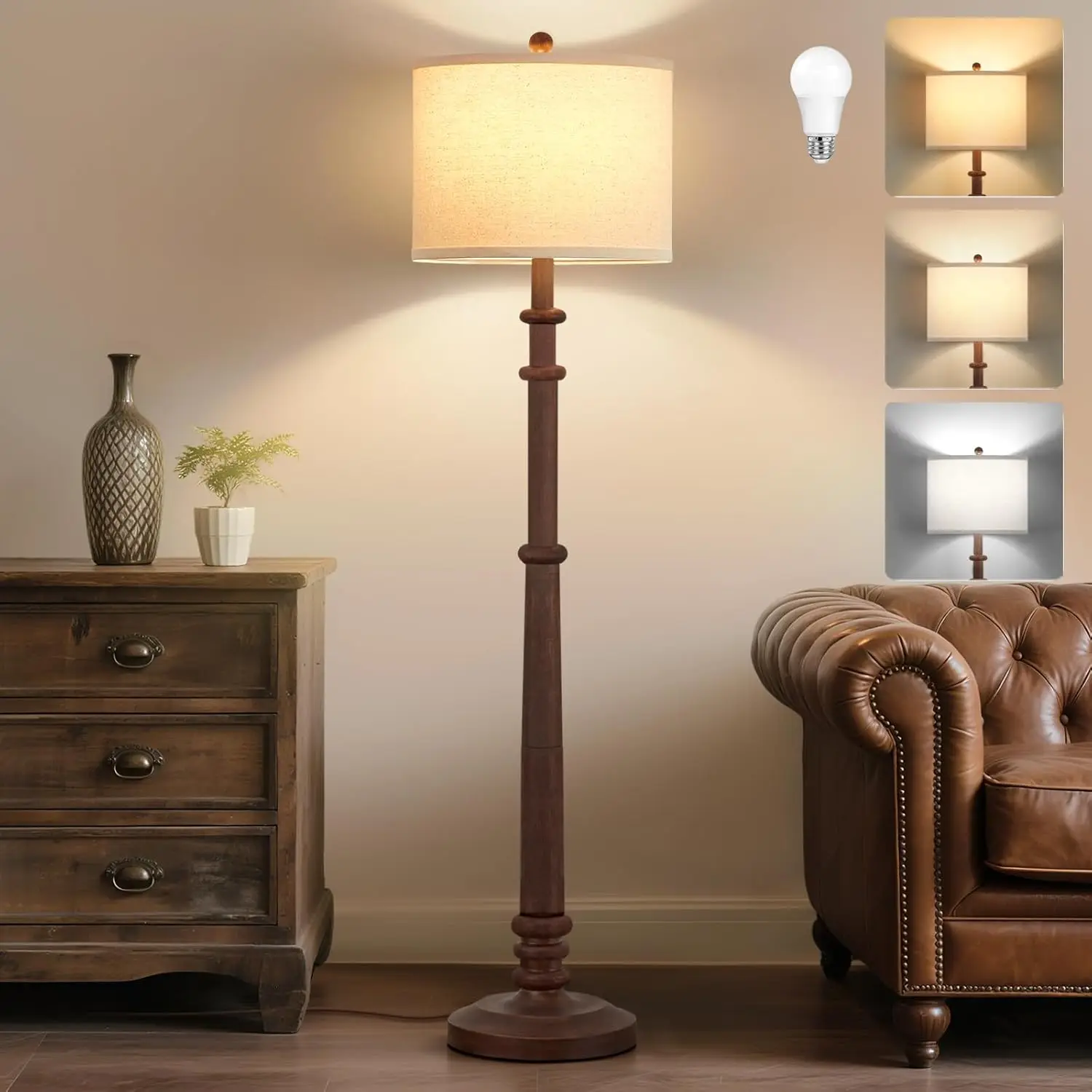 60" Adjustable Color Temperature Farmhouse Floor Lamp with Linen Shade - Vintage Style for Living Room Bedroom Office | Runolf