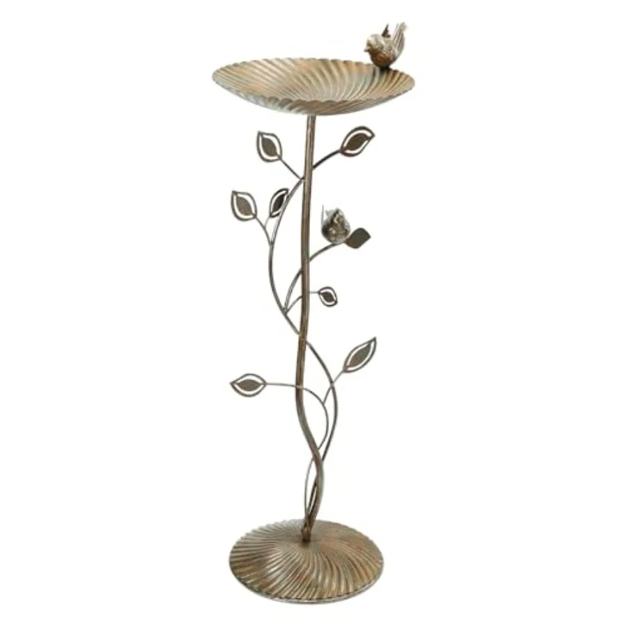 【Spot goods】MUMTOP Bird Baths for Outdoors-Metal Bird Bath Bowl - Golden Birdbaths Stand with Leaf and Bird Decor Bird Feeders | Runolf