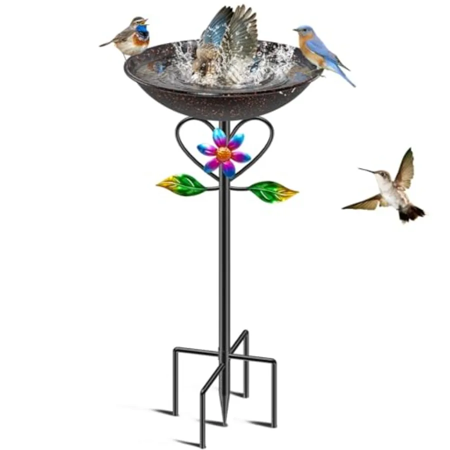 【Spot goods】Vintage Metal Bird Bath for Outside Standing Bird Feerder with Sunflower Love Decoration Detachable Birdbaths Bowl | Runolf